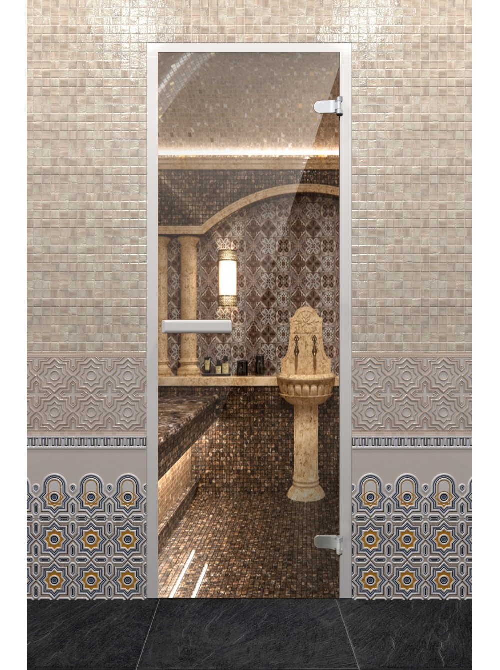 —Дверь для турецкой парной Хамам Лайт 700мм х 1900мм, без порога, стекло прозрачное