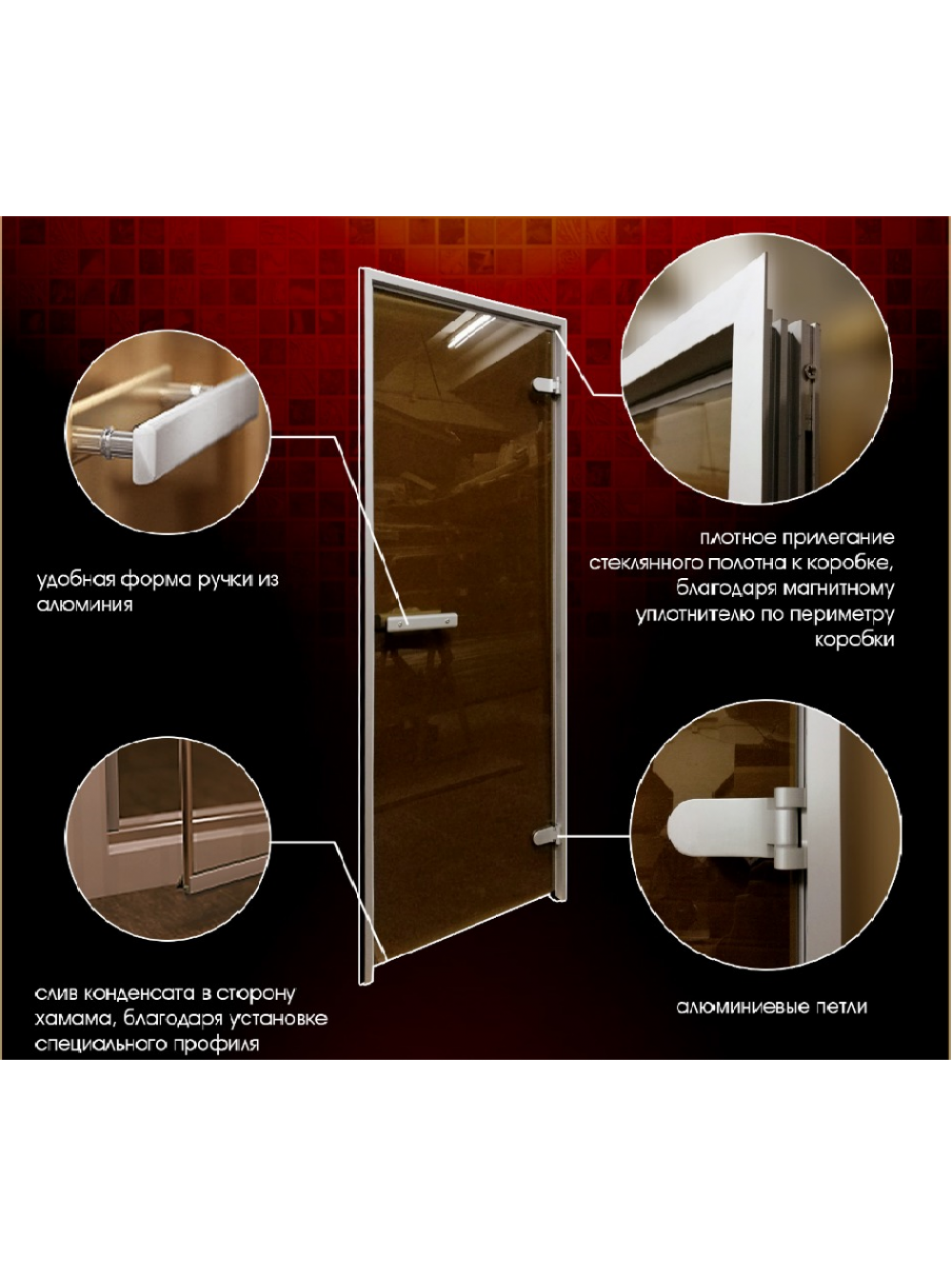 Дверь для турецкой парной Хамам Лайт 700мм х 1900мм, без порога, стекло прозрачное