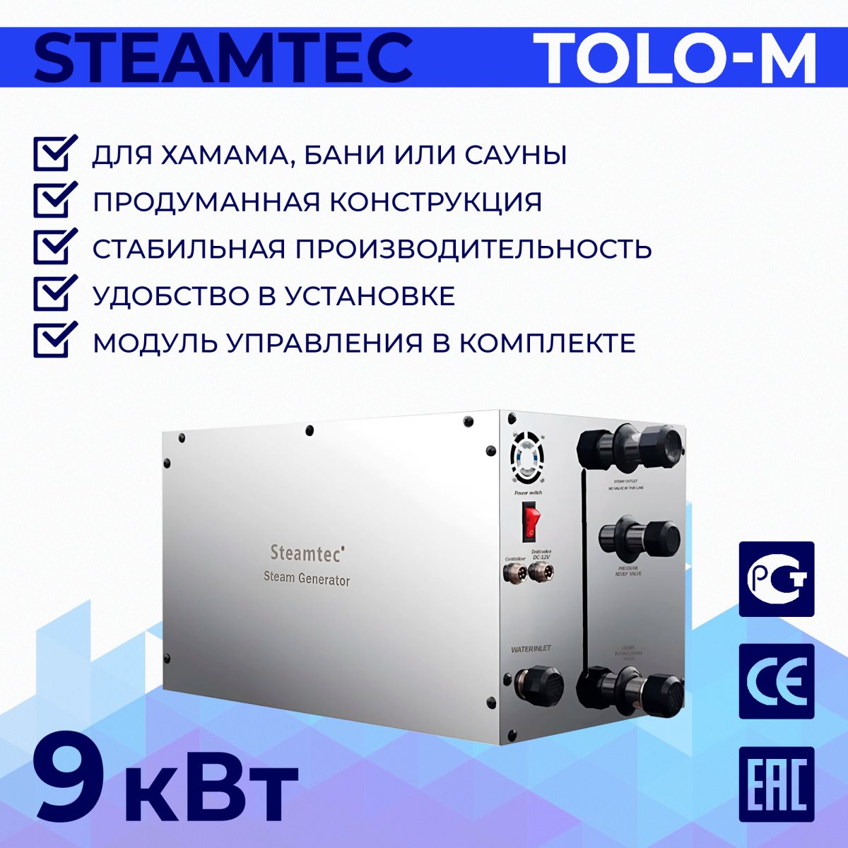 —Парогенератор для хамама Steamtec TOLO-M-90 9 кВт c пультом управления в комплекте