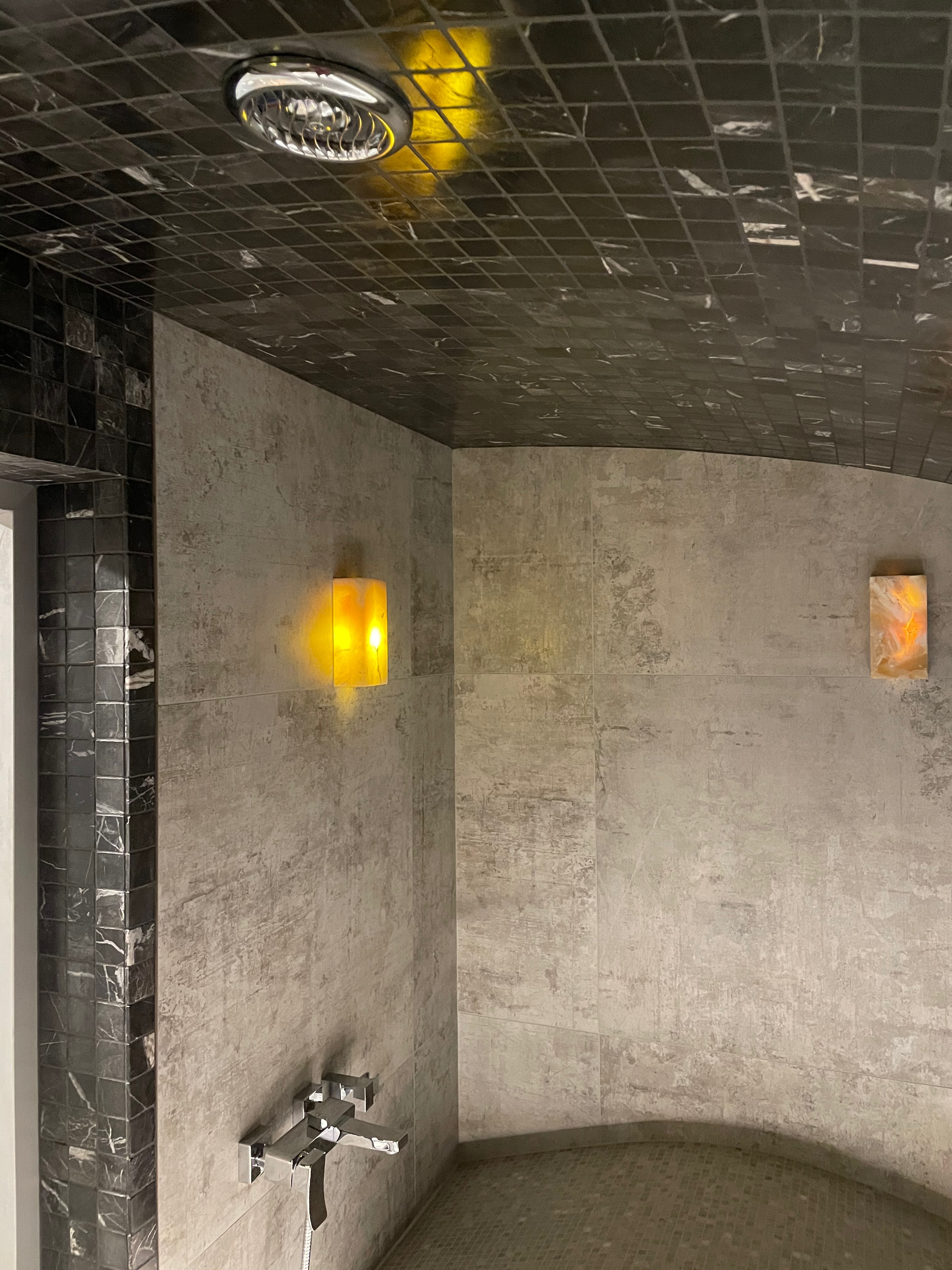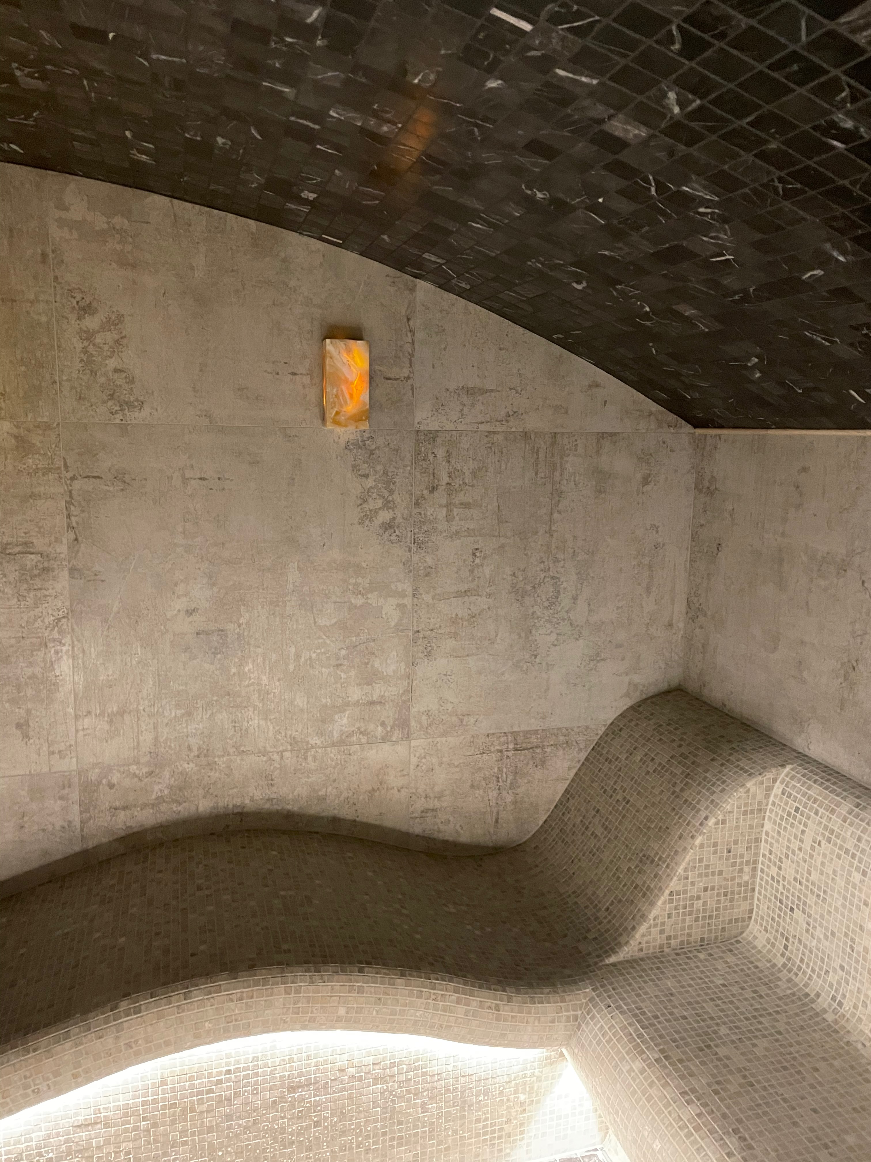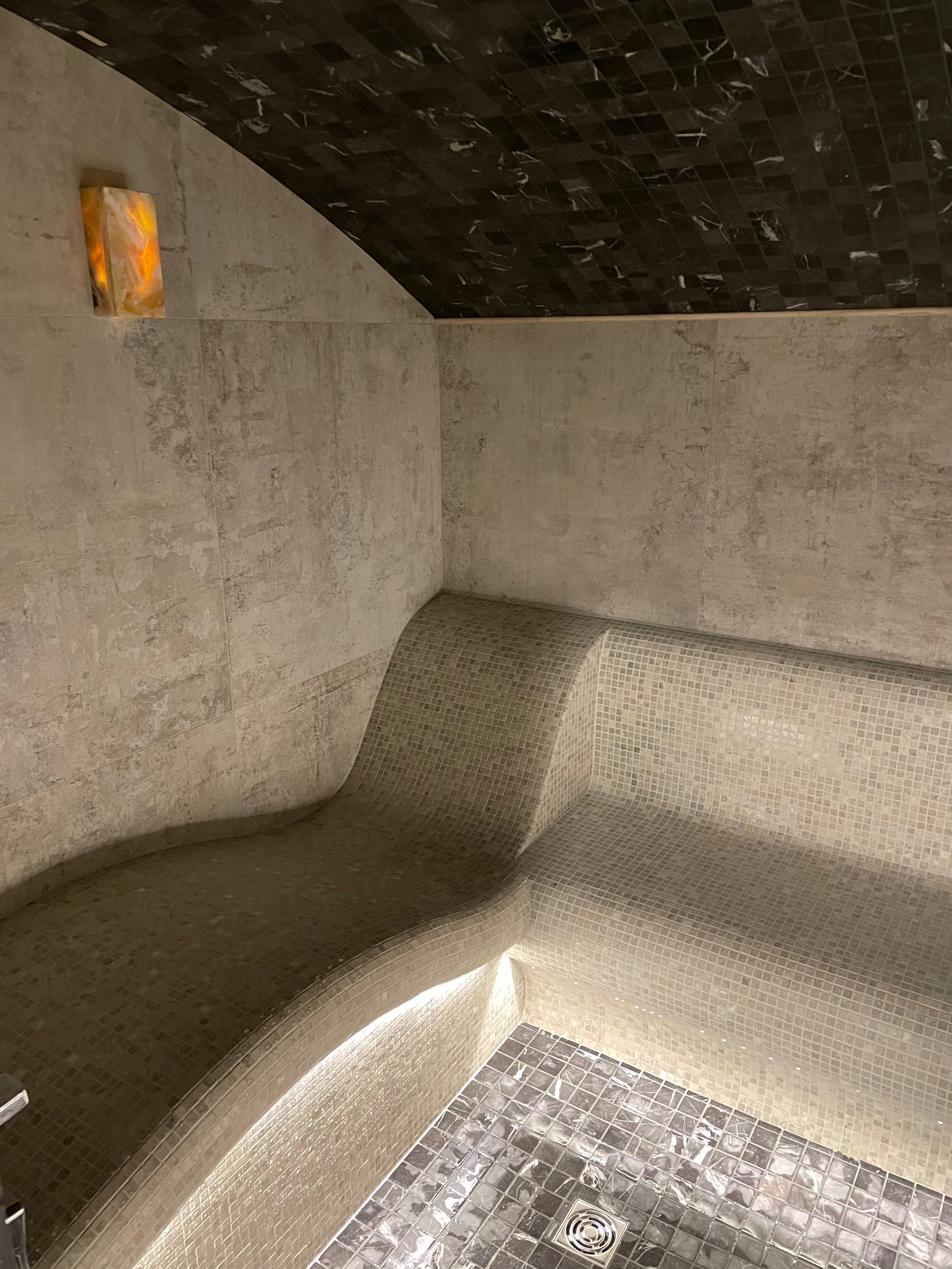 Образ классического хамама с темным потолком.
