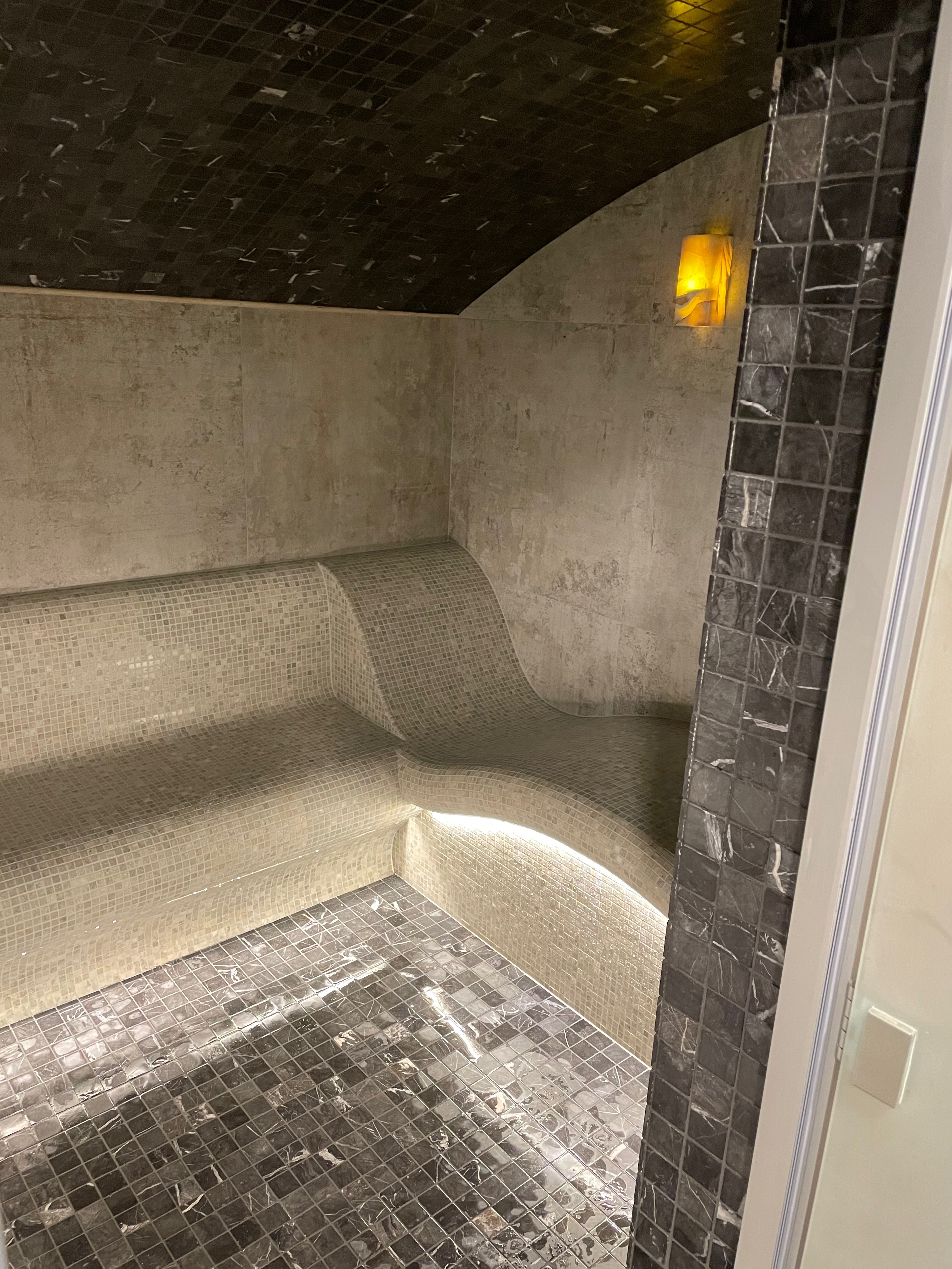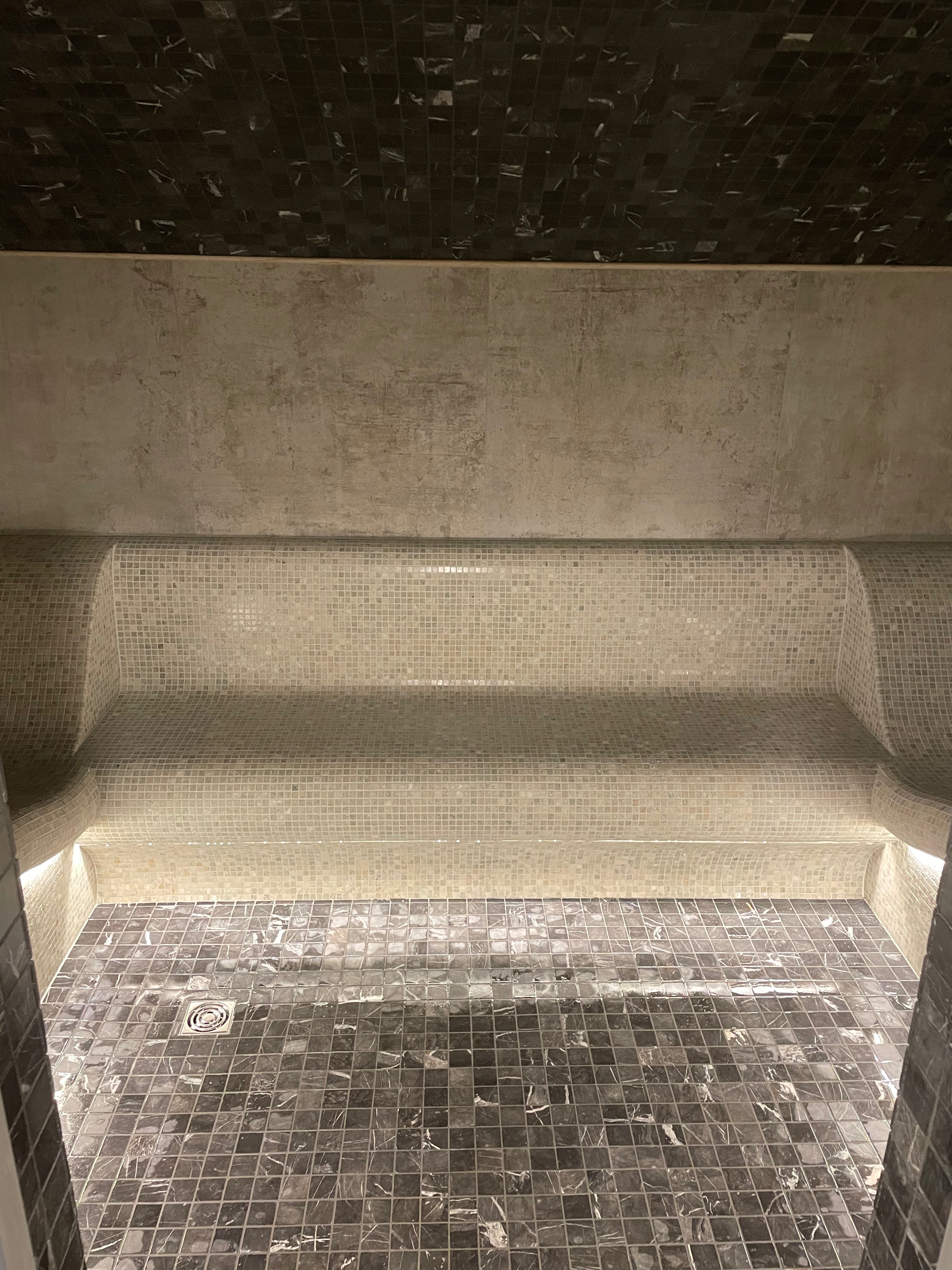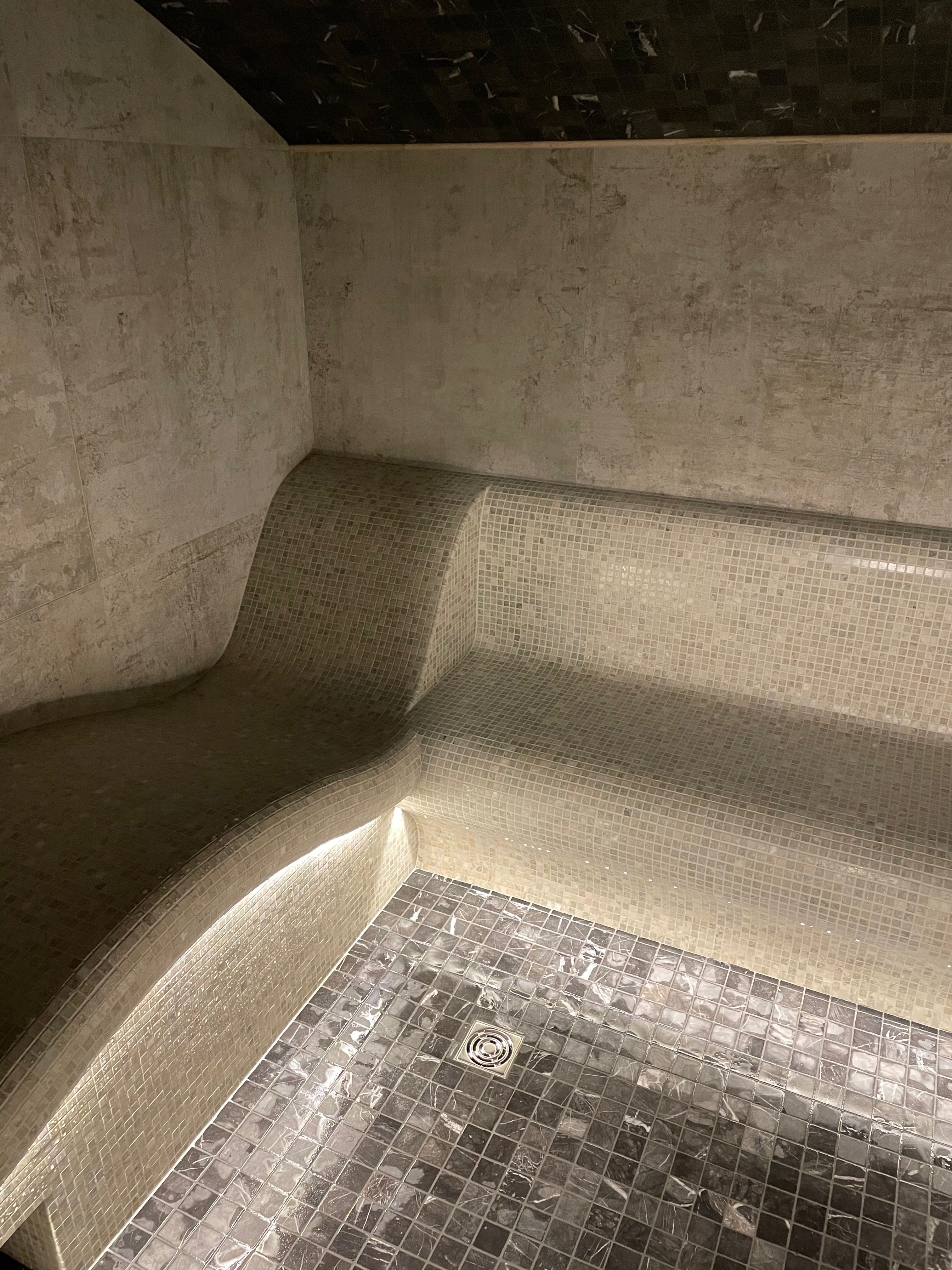 Образ классического хамама с темным потолком.